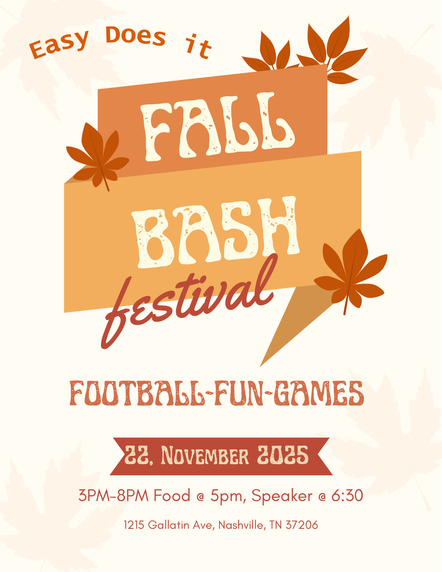 6-10pm, Saturday Nov 1, 2025 1215 Gallatin Ave, Nashville, TN 37026 (where Easy Does It meets) Best costumes win a prize Music, Haunted Vibes, Dancing, Pizza, Fellowship Speaker @ 8pm