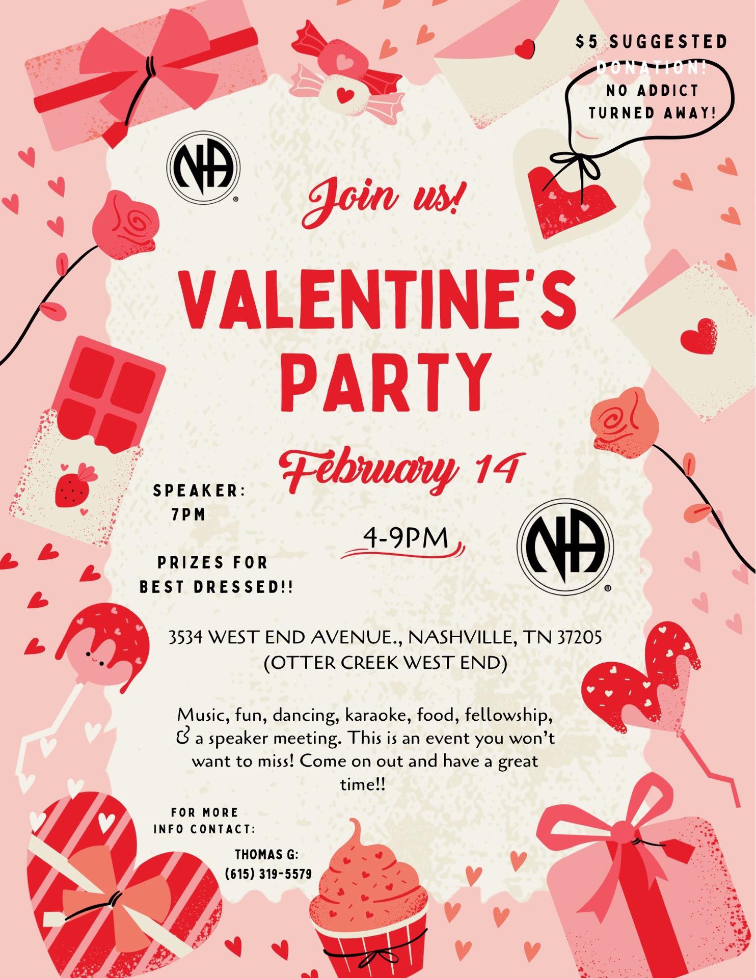 We survived 2025! 12/31/2025 6pm-12:30am Creative Affairs Event Center, 970 Madison Square, Madison, TN 37115 Food, Fun, Fellowship, Music & Vibes Speaker @ 8pm $5 suggested donation (no addict turned away) Contact: Randy M. 615-977-2719