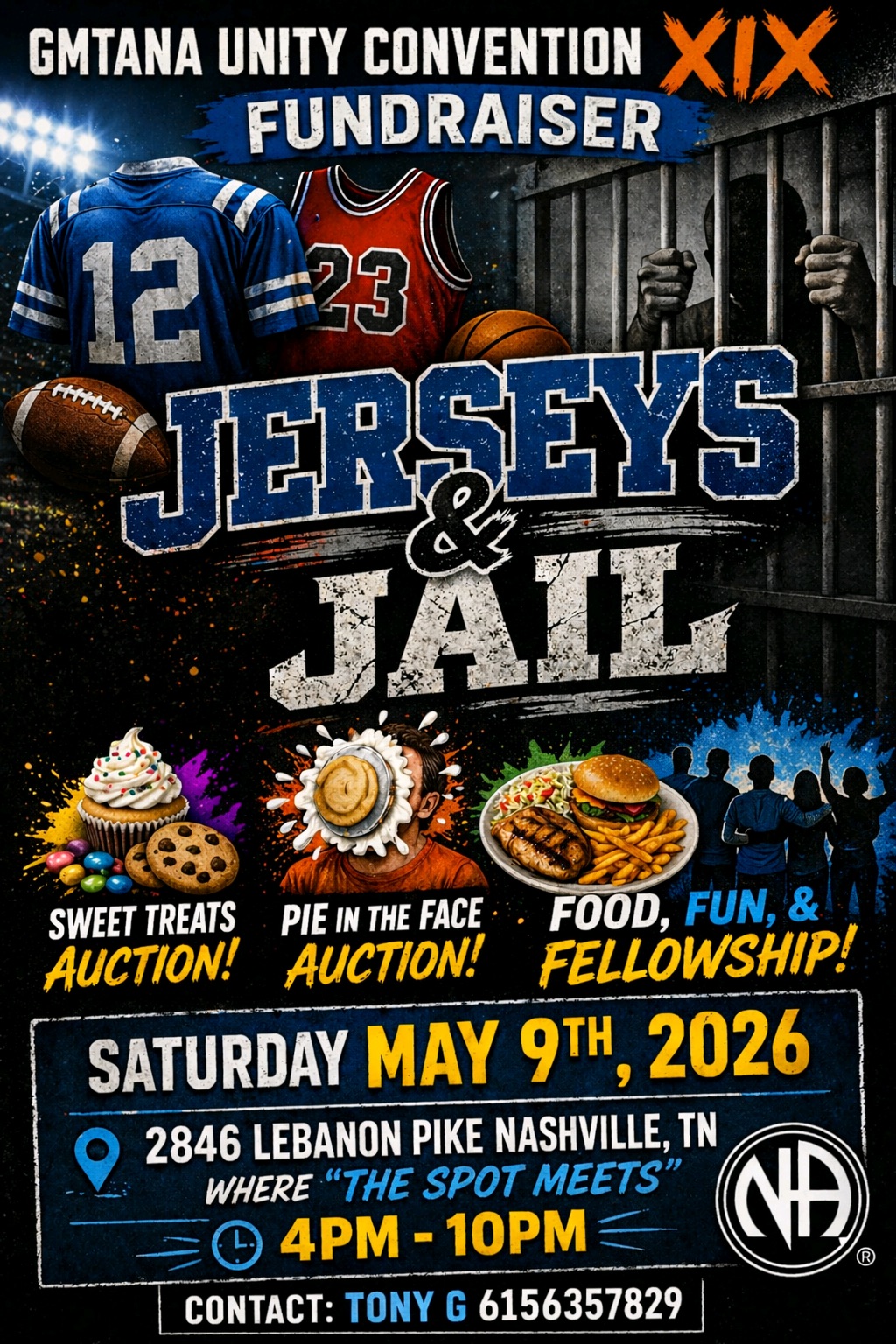 may, 2026 Jerseys & Jail - Unity XIX Fundraiser Connections UMC 2846 Lebanon Pike 09may4:00 pm10:00 pmJerseys & Jail - Unity XIX Fundraiser Event DetailsMay 9th, 2026 4pm-10pm 2846 Lebanon Pike, Nashville, TN Event Details May 9th, 2026 4pm-10pm 2846 Lebanon Pike, Nashville, TN Time (Saturday) 4:00 pm - 10:00 pm LocationConnections UMC2846 Lebanon Pike CalendarGoogleCal